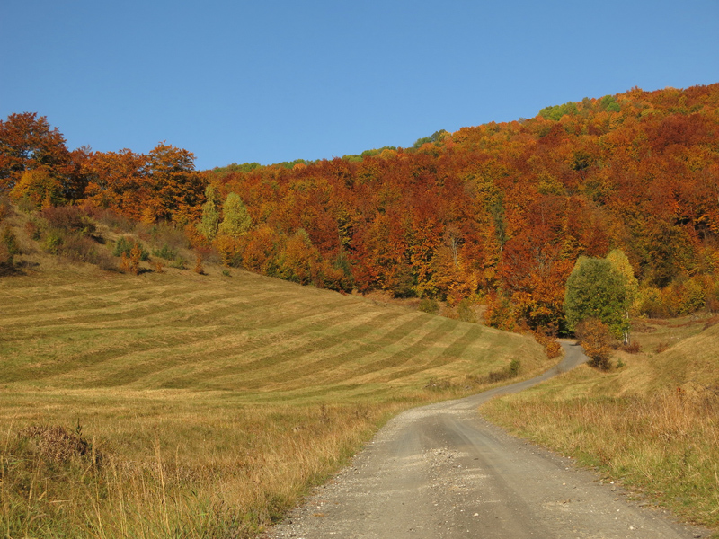 Další den jsme chtěli využít nádherného počasí a poznat další kus přírody v okolí Tisovce. Busem jsme brzy ráno dojeli do městečka Hnúšťa a odtud se pěšky vraceli do Tisovce přes Klenovské vrchy. Přešli jsme nejvyšší vrchol Klenovských vrchů – Ostrou, a dále přes Klenovskou Poľanu a Tisovskou Poľanu se za šera vracíme na Suché doly. Nejde o žádné turisty vyhledávané pohoří, navíc byl pracovní den, takže nás vůbec nepřekvapilo, že jsme za celý den nepotkali jediného výletníka, jen těžaře v lesním traktoru, jednoho lesáka, stáda krav a několikrát narazili na vysokou zvěř. Místa to jsou asi velmi málo navštěvovaná, některé turistické značky jsou tak staré, že stromy svým růstem roztáhly značku na kůře do dvojnásobné délky. V jednom úseku je navíc značka na úseku cca půl kilometru úplně vynechána, takže jsme spoustu času zabili přelézáním a podlézáním polomu (natolik byl hustý) a prodíráním se neprostupným ostružiním (bez stezek vyšlapaných zvěří bychom tou džunglí neprošli). Dokonce i server freemap.sk tuto skutečnost férově přiznává a v daném úseku je značka přerušena i na mapě. Někdo sem byl nedávno vyslán s plechovkou barvy udělat nové značení, ale spíš to vypadalo, že dotyčný těžce bloudil a sám byl rád, když už náhodou potkal nějakou starou značku a hned na vedlejší strom namaloval novou. Prostě divočina, která nás i po minulých zkušenostech ze Slovenského Rudohoří přeci jen překvapila. O to víc jsme si to užili, navíc výhledy z pastvin Klenovské Poľany v odpoledním slunci byly k nezaplacení.